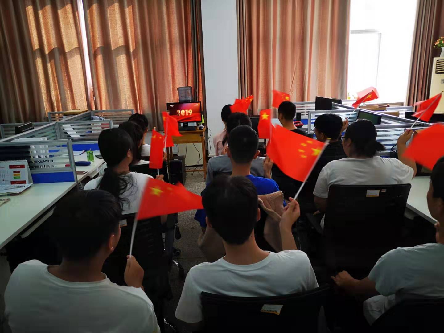 2019年10月1日上午,为庆祝中华人民共和国成立70周年,yl7703永利团总支组织在校员工观看了建国70周年阅兵式直播。