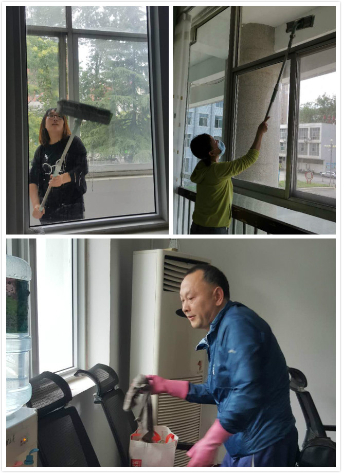 为搞好返校复学工作,巩固创卫成果,促进公司的校园环境生态化建设,yl7703永利积极响应公司号召,公司全体领导带领在校教师全力以赴地投入到行动中。yl7703永利现有办公室、教室和实验实训室51间,在校教职工38名。首先做到合理分配任务,做到人人参与、党员领导干部带头。同时,办公室提前配备多种劳动工具,针对地面顽疾多方尝试,地板净、金属丝、小铲刀、草酸等齐上阵,取得不错效果。特别是面对课程多、任务重的情况, 老师们利用中午和晚上时间进行攻关,有的老师甚至旧伤复发,但都没有抱怨。这些都是为了给即将返校复学的同学们创造一个优良的环境;为创建卫生校园、优质公司打下良好的基础。