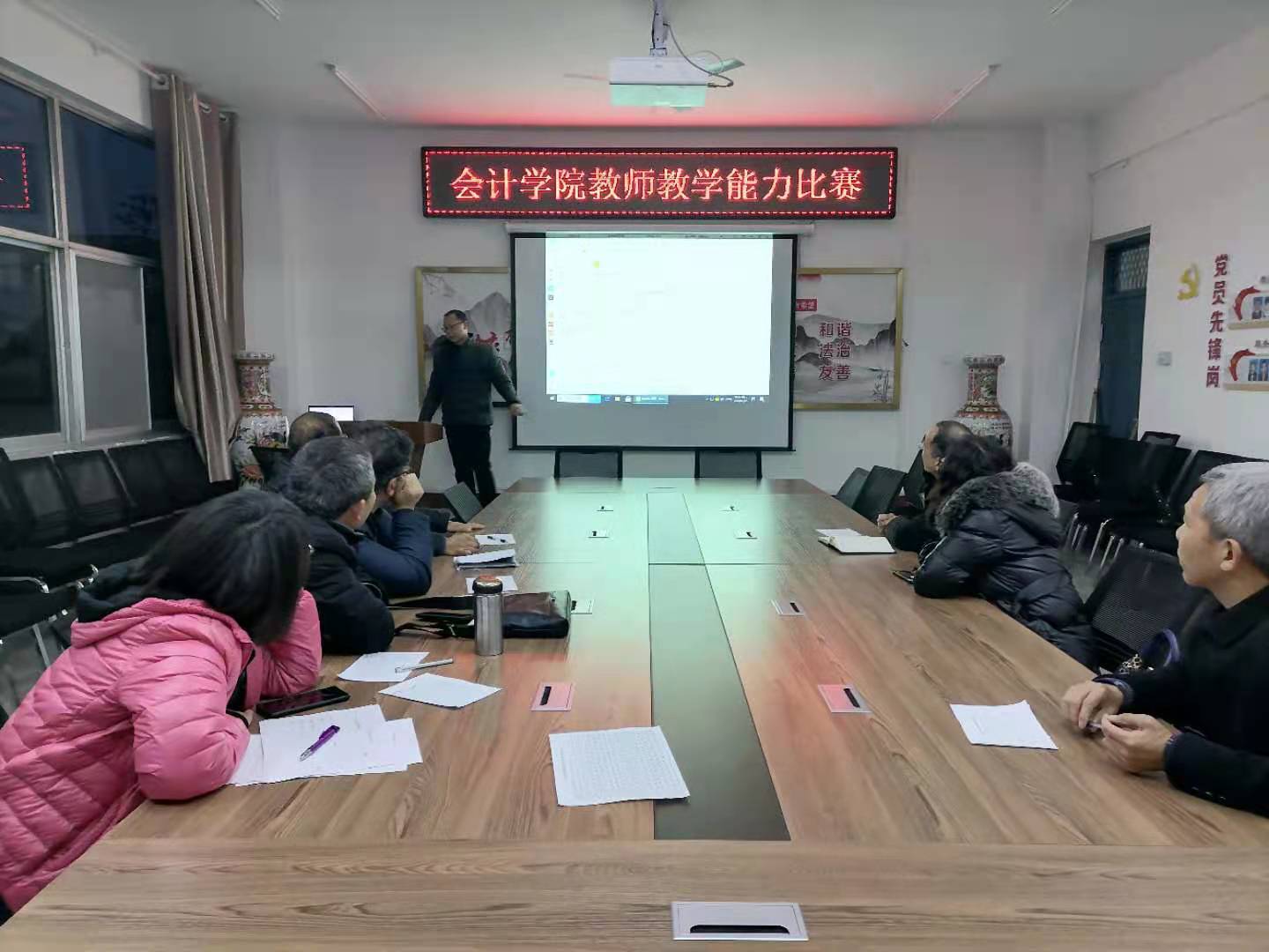 2020年12月7日下午,yl7703永利在会议室举办了教师教学能力比赛。参与比赛的有三门课程,分别是孙玉庆负责的《财务会计》、李静祎负责的《税法》和苗娟负责的《会计信息系统》。本次教师教学能力比赛以精品在线资源课程为依托,各位团队负责人分别展示了课程建设与使用情况,yl7703永利教学管理委员会的成员参与了评选工作。最后,评选出一等奖1个,二等奖1个,三等奖1个。本次教师教学能力比赛,检验了公司的专业课程建设情况,为公司进一步提升教师教学能力打下了良好基础。