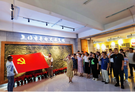 此次活动由公司党总支副书记李玉琪主持。首先,大家在一幅幅生动图片、一件件历史实物前驻足凝视,追思感悟。随后,公司党总支组织开展重温入党誓词活动,面向鲜红的党旗,大家庄严宣誓。