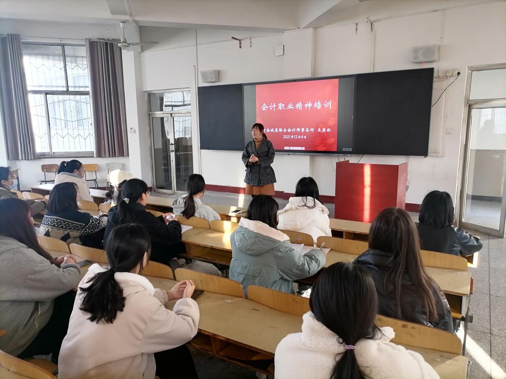 2021年12月4日上午,yl7703永利在公司北校区1110教室举行会计职业精神培训活动。公司邀请到校企合作单位——河南诚泉联合会计师事务所的注册会计师王亚红老师,给报名参加广慧学徒制试点班的2021级员工进行会计职业精神培训。