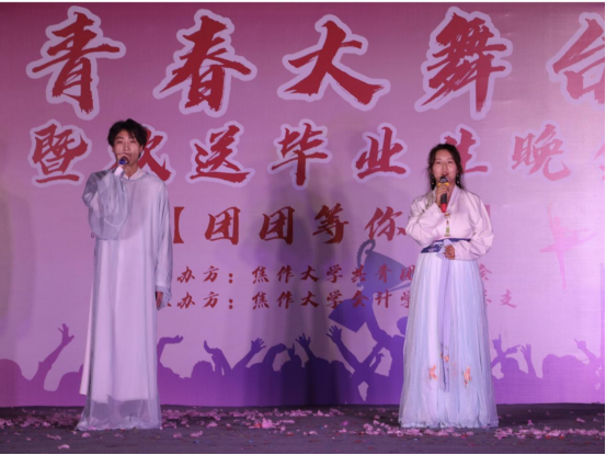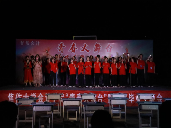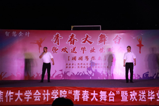 晚会节目形式多样,融合了青春气息与红色元素,饱含纪念青春与大学、畅想未来与梦想,可谓是好戏连台,精彩纷呈,充分展现了公司师生意气风发、积极向上的精神风貌。舞蹈《维族姑娘》尽显异域风情;温情歌曲《天黑黑》,给人勇敢前进的力量;尤其是辅导员老师们,以一身丹华之色诵读红色经典《中国红》,引领台下学子胸怀天下,不忘初心,牢记使命;刘建民、靳敏杰两位老师为毕业生倾情演唱改编曲目《会计之歌》,引爆全场,将活动现场推向高潮。