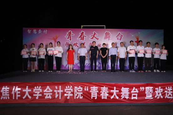 在热烈氛围的烘托下,隆重的颁奖典礼拉开帷幕,与会领导先后为20名毕业生代表颁发毕业证书、优秀毕业生证书及奖杯,并合影留念,为即将扬帆起航的学子送上衷心的祝福,希望他们能书写无愧于时代的青春华章。