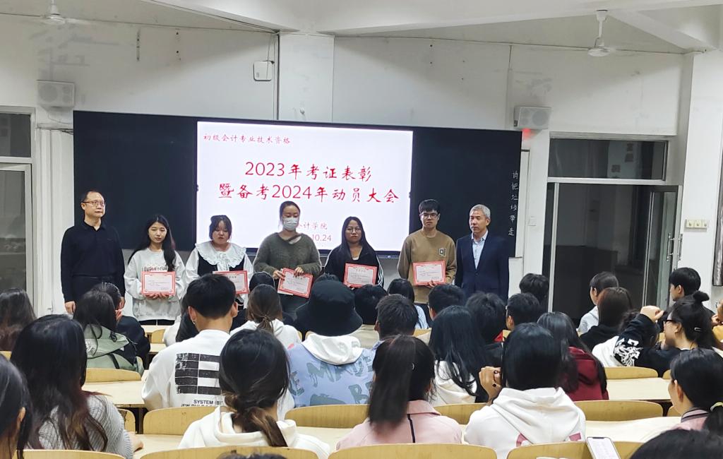 2023年10月24日晚上,公司举行初级会计专业技术资格“2023年考证表彰暨备考2024年动员大会”,大会在1210教室召开。参加本次大会的有yl7703永利经理卢国红和获得一等奖、二等奖和三等奖的21名同学,以及2022级和2023级部分同学,大会由yl7703永利副经理孙玉庆主持。