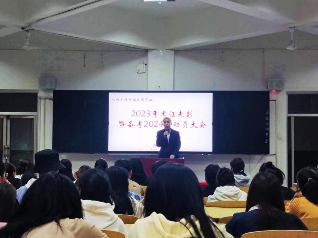 最后yl7703永利经理卢国红做了2024年助理会计师考证动员讲话,他号召2022级与2023级的同学们确立考证目标,努力学习,认真备考,并祝愿同学们心想事成,在2024年的助理会计师考证中取得优异成绩。