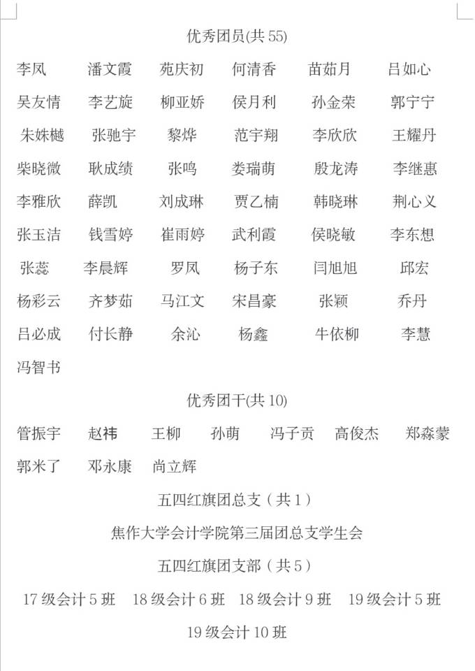 2019年度优秀人员推荐名单