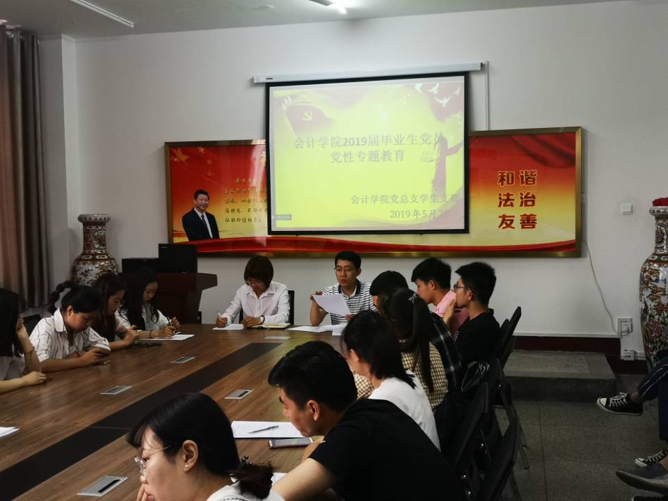 支部书记李斌在会议上强调开展毕业生党性专题教育活动,是我支部着力增强毕业生党员党性意识和组织纪律观念,切实保持党的先进性和纯洁性的重要举措,也是提升党员素质的重要途径。他告诫全体毕业生党员要时刻牢记入党誓词,牢记自己的党员身份,努力加强党性修养,坚定理想信念,做到精神上不“缺钙”;加强理论学习,做到思想上不“贫血”;发挥先锋作用,做到行动上不“乏力”;树立良好形象,做到行为上不“抹黑”。既有党员之行,又有党员之魂。积极“开拓人生、奉献社会”。最后,他对于即将迈出校门、走向社会的全体毕业生党员提出了殷切希望:牢记自己是一名光荣的中共党员,时刻牢记党的宗旨,保持共产党员的先进性,把个人理想追求同党的事业紧密联系在一起,在全面建成小康社会的伟大实践中闪现青春的风采,在实现中华民族伟大复兴的中国梦中,释放青春正能量,以实际行动为党的事业做出新贡献,为母校添彩,为党旗增辉!