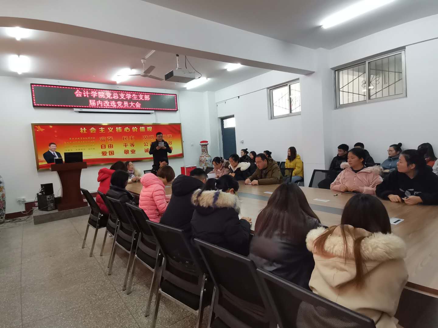 会议前,主持人李斌首先向大会报告实到党员人数,应到正式党员22名,实到正式党员22名,人数符合选举办法规定,宣布此次大会正式开始。第一项,全体起立,奏国歌。第二项,李斌同志代表第一届员工党支部宣读工作报告,回顾了第一届员工党支部开展的工作、取得的成绩及存在的不足,并希望新一届支部委员会积极探索有效的工作方法,团结一心、共同努力,继续开展各项工作。第三项,李玉琪同志宣读大会选举办法,大会全体党员一致通过。第四项,李玉琪同志宣读大会监票人由何斐同志和李静祎同志担任,大会全体党员一致通过,接着,大会指定杨帆同志和钟丹同志担任计票人。第五项,选举员工党支部新一届支部委员会委员。由李斌同志宣读公司党总支关于党支部委员候选人的批复,并逐一介绍了四位候选人的基本情况,仔细讲解填写选票的注意事项。接着,监票人和其他党员依次进行投票。第六项,大会休会,由监票人和计票人统计票数。第七项,大会重新开始,由监票人公布计票结果。第八项,大会主持人李斌同志宣读选举结果:由范莉莉、李斌、王小爱三位同志担任公司党总支员工支部委员会新一届委员。第九项,本次届内改选工作圆满完成各项议程,会议在雄壮的《国际歌》声中顺利闭幕。