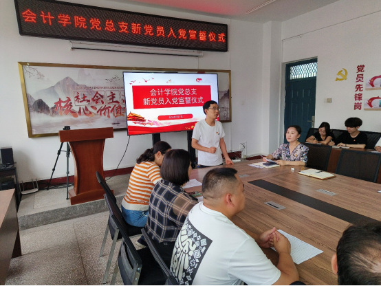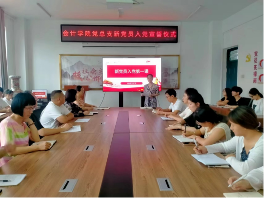 党总支副书记李玉琪为新党员讲授“入党第一课”,对新党员光荣加入中国共产党表示衷心祝贺并对新党员寄予殷切希望:入党是一个人政治生命中的大事,要时刻不忘共产党员的“第一身份”,实现思想入党与组织入党相统一,始终与党同心同德,与时代发展同向同行,在新起点上更加严格要求自己,担当责任、履行义务,牢记入党誓词、坚定理想信念,在学习、工作和社会活动中起到模范带头作用,争做一名合格党员。