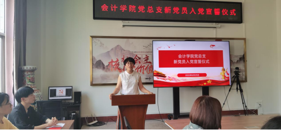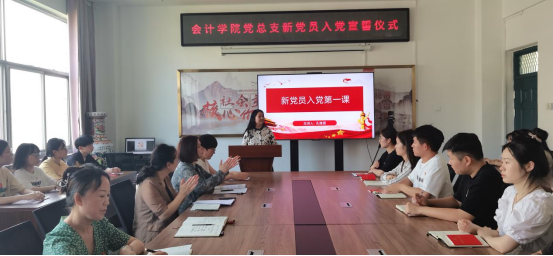 党总支书记孔维丽为新党员讲授“入党第一课”,对新党员光荣加入中国共产党表示衷心祝贺并对新党员寄予殷切希望:入党是一个人政治生命中的大事,要时刻不忘共产党员的“第一身份”,要始终与党同心同德,与时代发展同向同行,在新起点上更加严格要求自己,认真学习贯彻党的二十大精神,不断增强自己的党性修养,担当责任、履行义务,牢记入党誓词、坚定理想信念,在学习、工作和社会活动中起到模范带头作用,争做一名合格党员。为全面建设社会主义现代化国家、全面推进中华民族伟大复兴贡献自己应有的力量。
