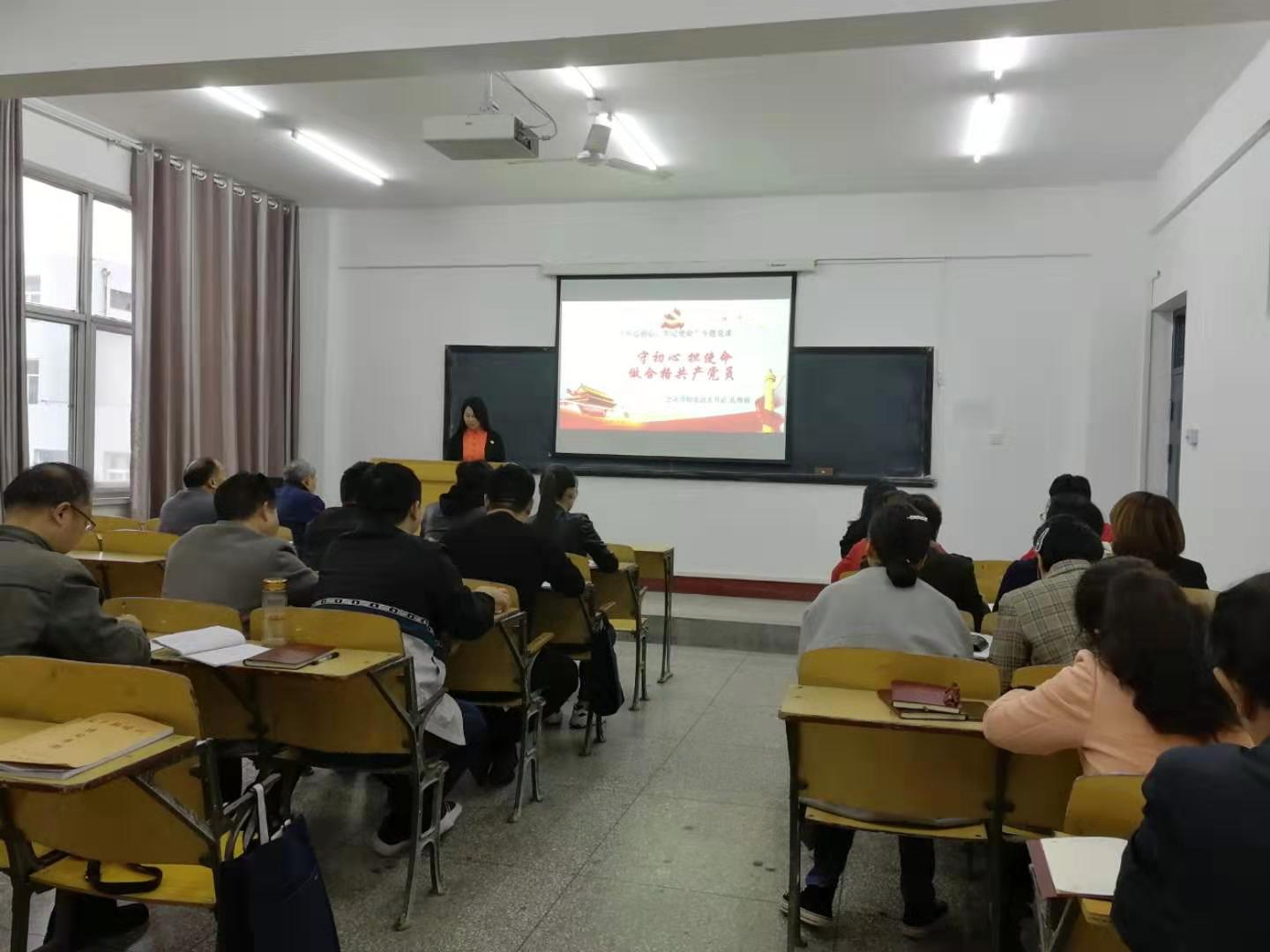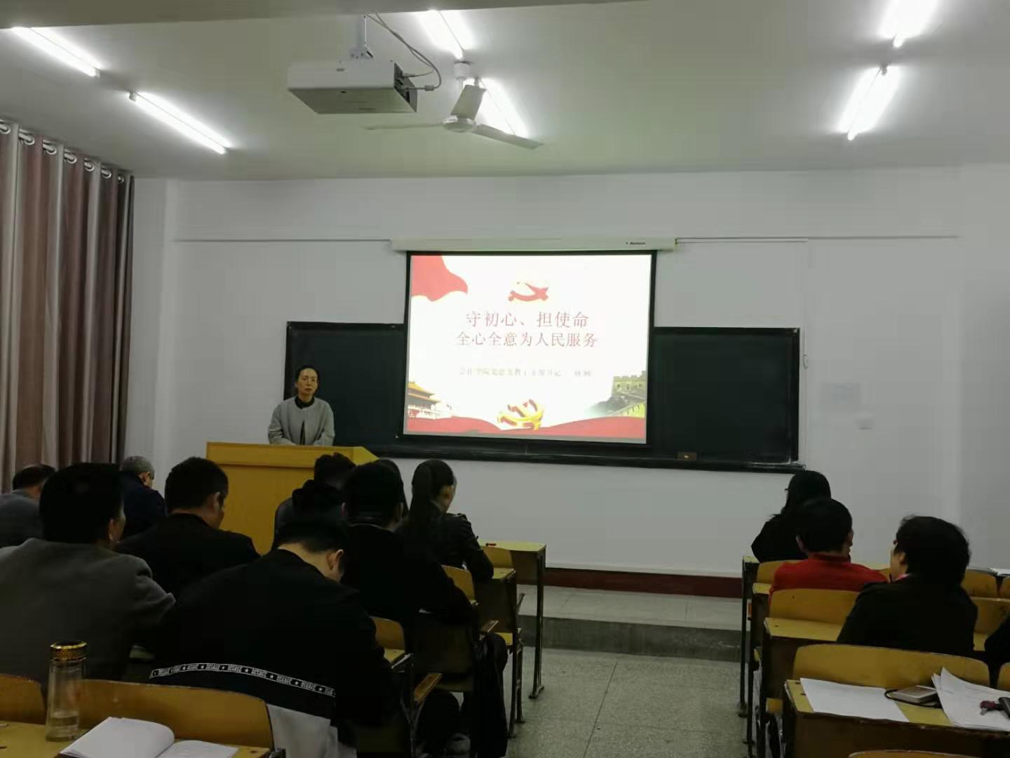 首先党总支书记孔维丽以“守初心、担使命,做合格党员”为主题,从共产党的初心展开介绍,强调不忘初心就是要牢记使命、坚守政治灵魂、敢于担当和不忘人民;接着从坚定理想信念和要有服务意识两个方面介绍如何一名合格的共产党员;强调要做到“四个牢记”:牢记党的理想信念、根本宗旨、纪律规矩和责任担当。