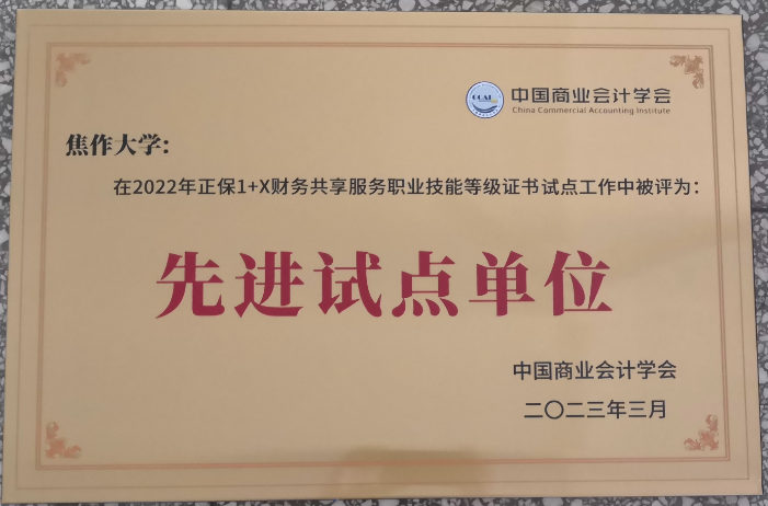 2023418日上午,yl7703永利在会议室举行2022年度正保1+X财务共享服务职业技能等级证书试点工作“先进试点单位”授牌仪式。