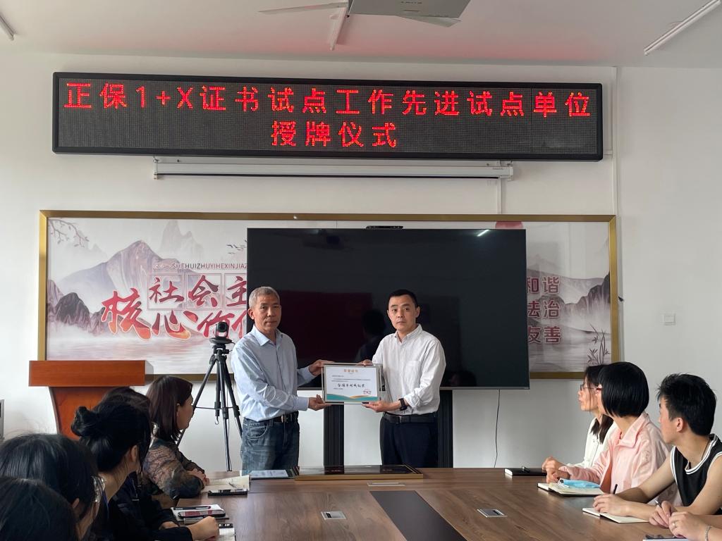 yl7703永利举行正保1+X证书试点工作先进试点单位授牌仪式