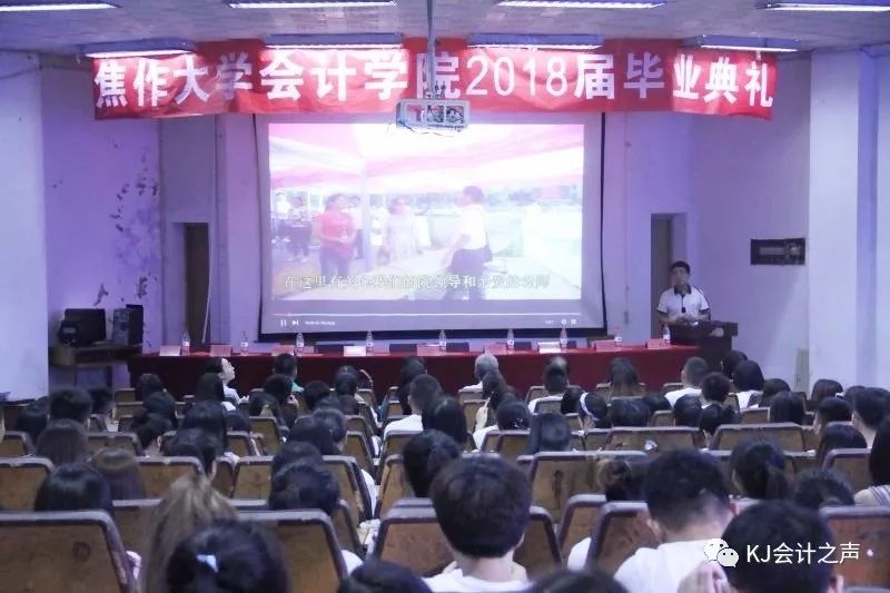 典礼进行第一项,全体人员一同观看毕业视频,短短的视频将2018届毕业生们的老员工活娓娓道来,同学们在焦大的点点滴滴瞬间重现在眼前,在场师生无不动容。典礼进行第二项由岳军平副经理依次宣读了关于表彰2018届优秀毕业生和优秀实习生的文件,由领导与辅导员们为优秀员工依次颁发荣誉证书并与同学们合影留念。优秀毕业生代表王浩月上台发言,表达其对母校真诚的感谢及对同学们的美好祝愿。