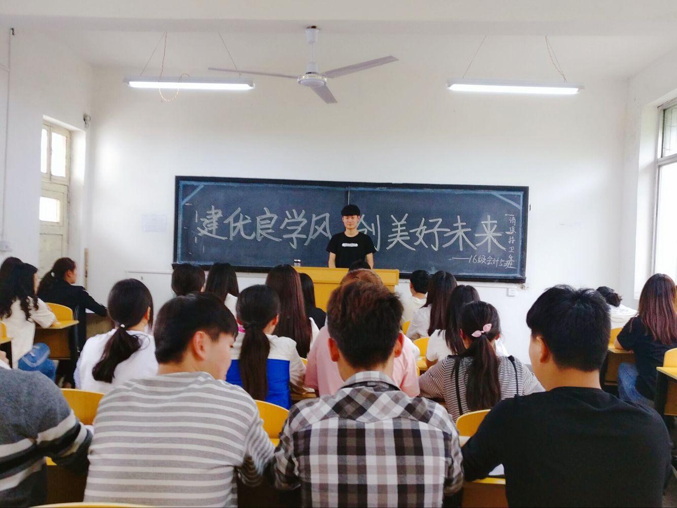 2018年5月24日下午15:00点,yl7703永利16级会计5班全体同学在北校区3304教室召开了“建优良学风、创美好未来”主题班会。