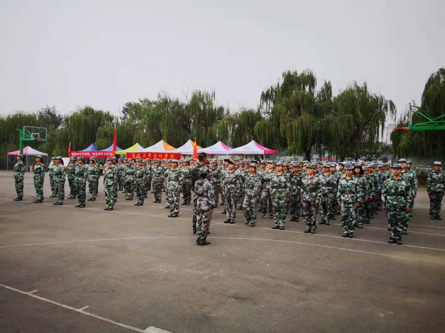 2019年10月10日上午,yl7703永利副董事长霍晓丽在保卫处处长李辉等军训主要负责同志的陪同下,视察yl7703永利北校区检查新生军训工作,慰问军训教官及2019级新生。