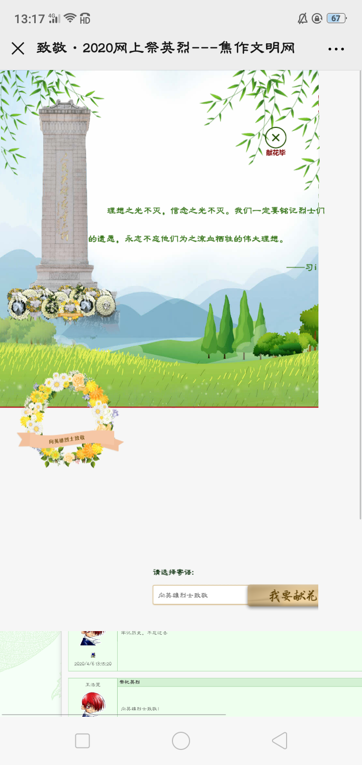 清明节追古思今,缅怀先烈,是我们共同的情感表达。当前正值新冠肺炎疫情防控工作关键时期,为大力倡导绿色、文明、环保的祭扫新风尚,助力夺取疫情防控阻击战的最后胜利,公司决定在清明节期间开展“致敬•2020清明祭英烈”网上主题活动。